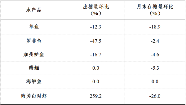 对虾大量上市。1月春节,基地看好市场,加快规格对虾出塘。据省农业信息监测体系数据,1月我省规模基地南美白对虾出塘量环比增加259.2%。