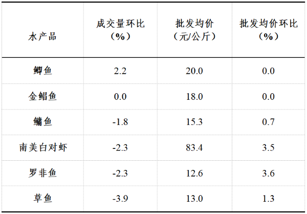 三、水产品总成交量小幅减少,批发均价上涨为主