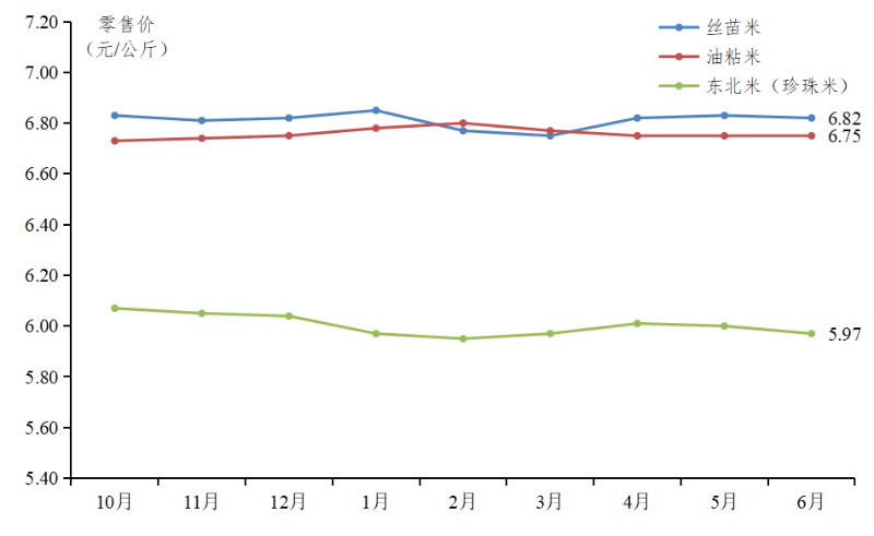 大米零售价格小幅波动。据地级市“米袋子”数据,农贸市场大米6.42元/公斤,环比微跌0.2%,籼米6.48元/公斤,环比持平,粳米6.05元/公斤,环比微跌0.5%。其中丝苗米价格为6.82元/公斤,环比微跌0.1%,油粘米价格为6.75元/公斤,环比持平,东北米(珍珠米)价格为5.97元/公斤,环比微跌0.5%。