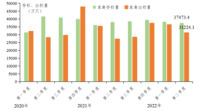 一、生产供应:家禽存栏下降,禽肉、禽蛋供应增加