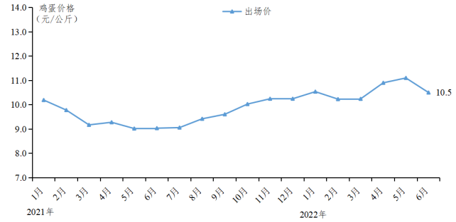 蛋价总体上涨。上半年受国内鸡蛋供应减少影响,鸡蛋出场价整体呈上涨趋势,出场均价10.6元/公斤,同比上涨12.5%。