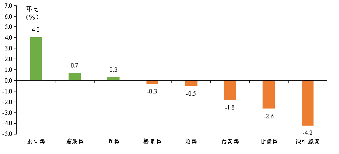 蔬菜交易量增长较多的是水生类蔬菜,绿叶蔬菜、甘蓝类交易量减少较多。主要交易品种中,芹菜交易量明显减少,环比下降25.6%,其余品种交易量较稳定。