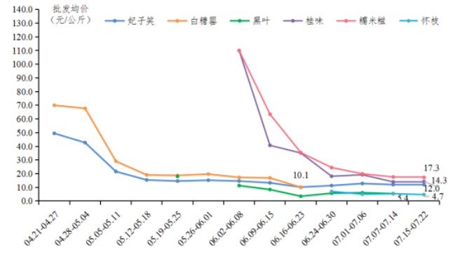 一、荔枝:中晚熟上市迎来高峰,价格小幅回落