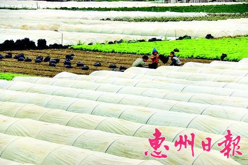 昨日在惠州市龙门县平陵镇、惠州市龙江镇等地看到,许多蔬菜种植户忙着为蔬菜加盖薄膜。菜农老张说,昨日气温低,遇到了倒春寒,很多蔬菜都受冻了,没有受冻的也生长缓慢,加盖薄膜就是为了给它们保暖。