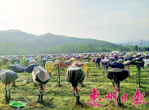 24日,在惠州市博罗县柏塘镇上洞村看到,火龙果全部穿上了厚厚的“衣服”。原来,得知寒潮来临,火龙果主人倪先生提前几天就组织工人用布将火龙果包住。“这样火龙果就不怕冻着了。”倪先生说,“还好提前准备,不然被冰雨一打,100多亩火龙果就要全部遭殃了。”