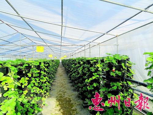1月25日,来到位于博罗县长宁镇松树岗村的一个“空中田园”种植基地。在这里,共有18个大棚,大棚内种植着番茄、草莓、黄瓜、生菜、萝卜苗等蔬果。这里从外观上看,呈现隧道型,整个大棚用白色薄膜覆盖,在大棚入口处,还有一个推拉式的大门,打开大门后,要抓紧时间进入,然后将推拉门关上,避免大棚内的农作物受到外界环境滋扰。