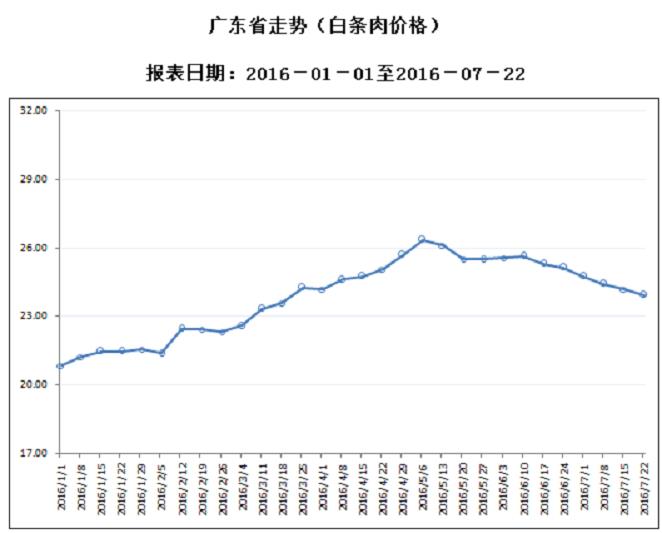 广东省屠宰生猪及肉品价格周报(2016年第30周)