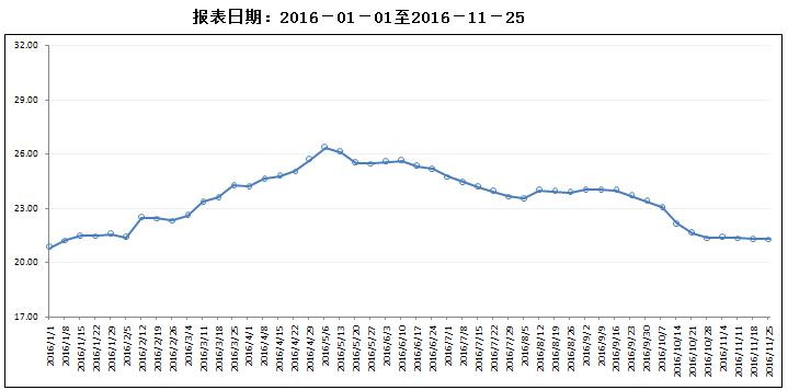 据对全省53家规模以上生猪定点屠宰样本企业监测统计,2016年11月21-27日,生猪平均收购价格为17.32元/公斤,较前一周上涨0.23%,较去年同期上涨1.11%。本周较上周环比涨幅较大的地区有韶关市1.98%,汕头市1.30%,茂名市0.92%。