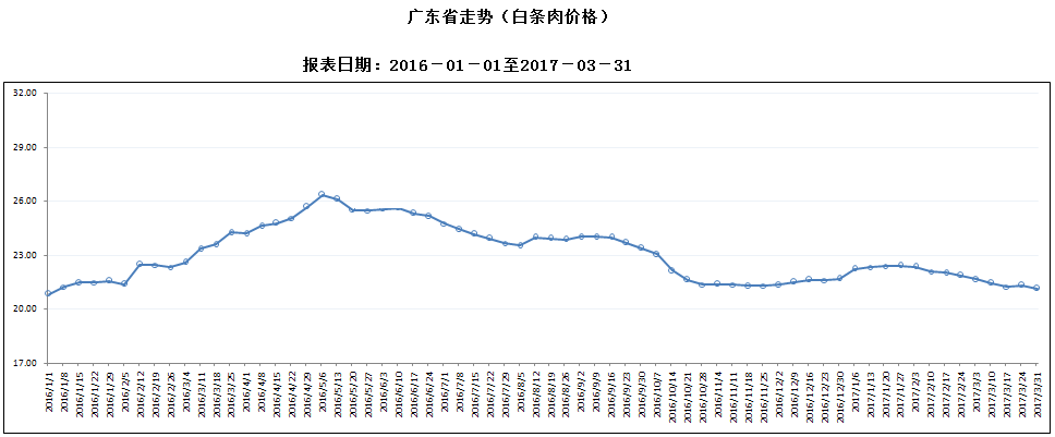 广东省屠宰生猪及肉品价格周报(2017年第13周)