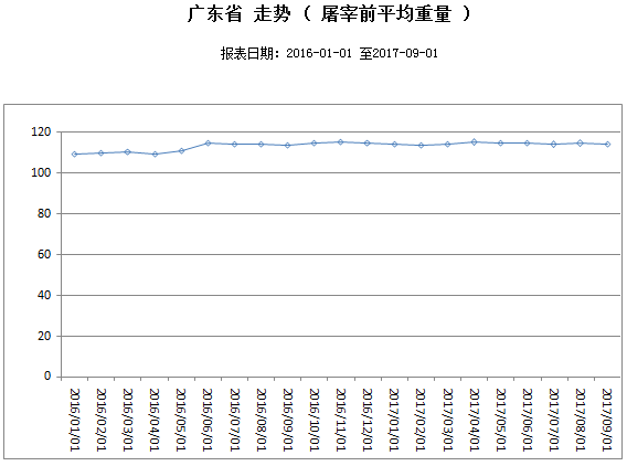 9月份,屠宰企业生猪屠宰前平均重量114.22公斤,环比下降0.16%。(畜禽屠宰管理处)