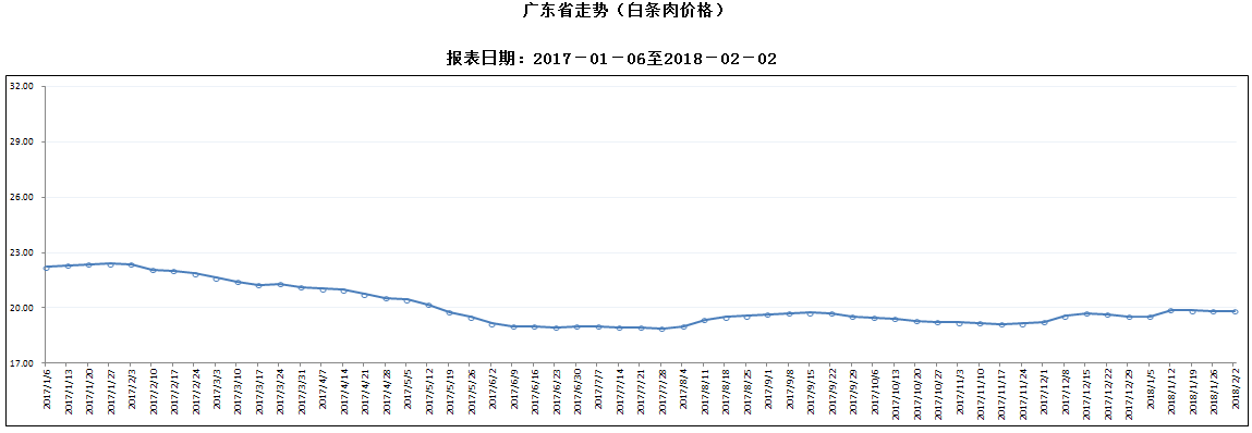 白条肉平均出厂价格为19.81元/公斤,较前一周下降0.15%,较去年同期下降11.36%。本周较上周环比降幅较大的地区有广州市3.16%,中山市1.91%,肇庆市1.06%,但仍有3个市呈上涨态势,其中深圳涨幅超过7%。(畜禽屠宰管理处)