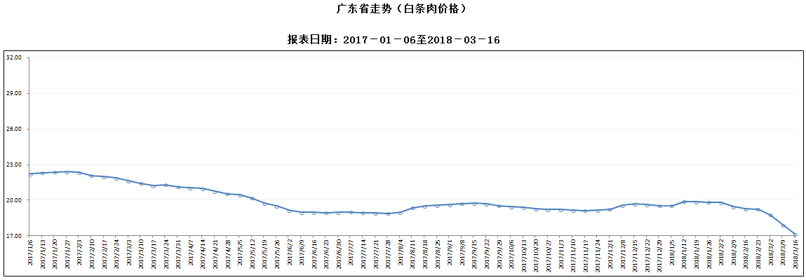 据对全省53家规模以上生猪定点屠宰样本企业监测统计,2018年3月10-16日,生猪平均收购价格为13.49元/公斤,较前一周下降4.66%,较去年同期下降15.95%。本周较上周环比降幅较大的地区有韶关市7.54%,梅州市7.33%,珠海市7.03%。