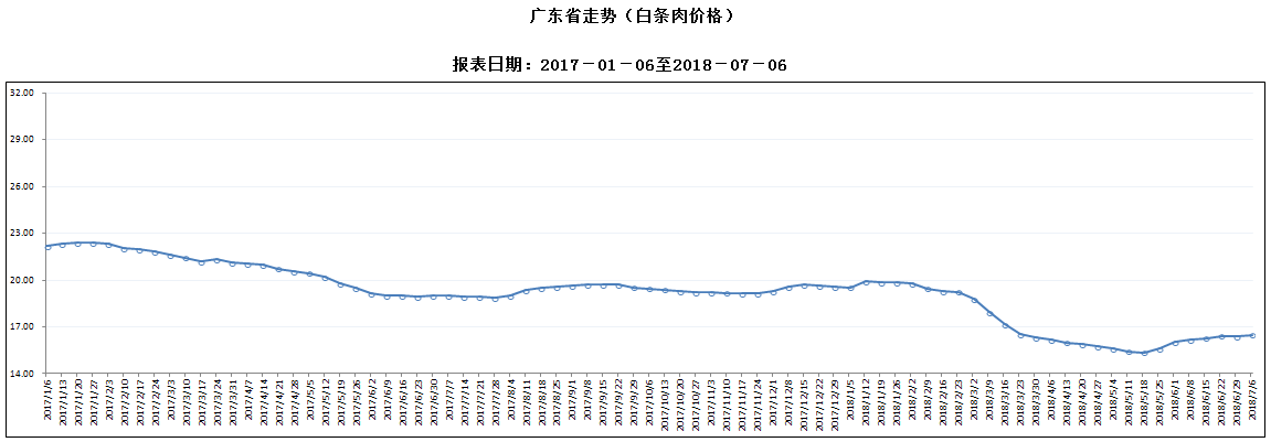 据对全省53家规模以上生猪定点屠宰样本企业监测统计,2018年6月30-7月6日,生猪平均收购价格为12.80元/公斤,较前一周上涨0.95%,较去年同期下降16.18%。本周较上周环比涨幅较大的地区有珠海市3.97%,韶关市3.94%,湛江市3.85%,但仍有3个市呈下降态势,其中惠州降幅超过1%。