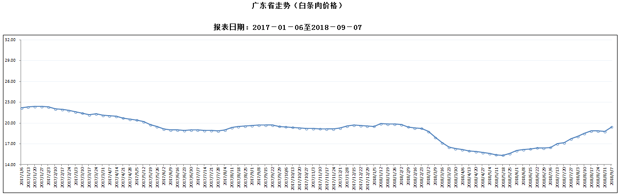 广东省屠宰生猪及肉品价格周报(2018年第36周)生猪及猪肉价格环比上涨、同比下降