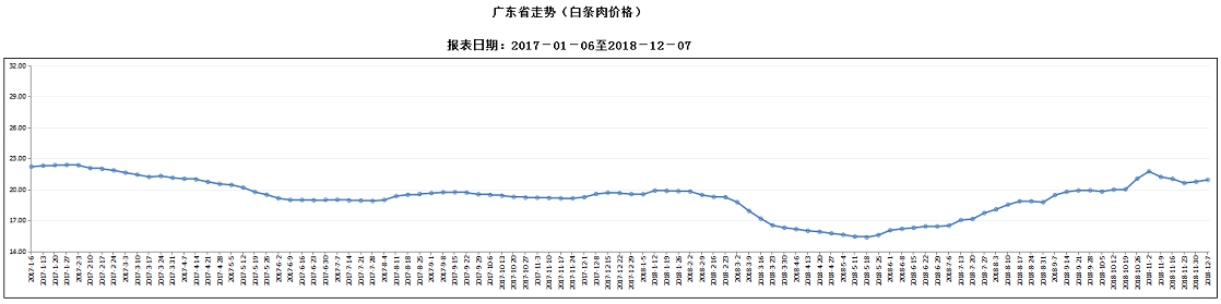 据对全省53家规模以上生猪定点屠宰样本企业监测统计,2018年12月1-7日,生猪平均收购价格为16.66元/公斤,较前一周上涨1.40%,较去年同期上涨5.64%。本周较上周环比涨幅较大的地区有江门市3.37%,深圳市3.33%,东莞市2.90%,但揭阳和湛江呈下降态势,降幅均超过1%。