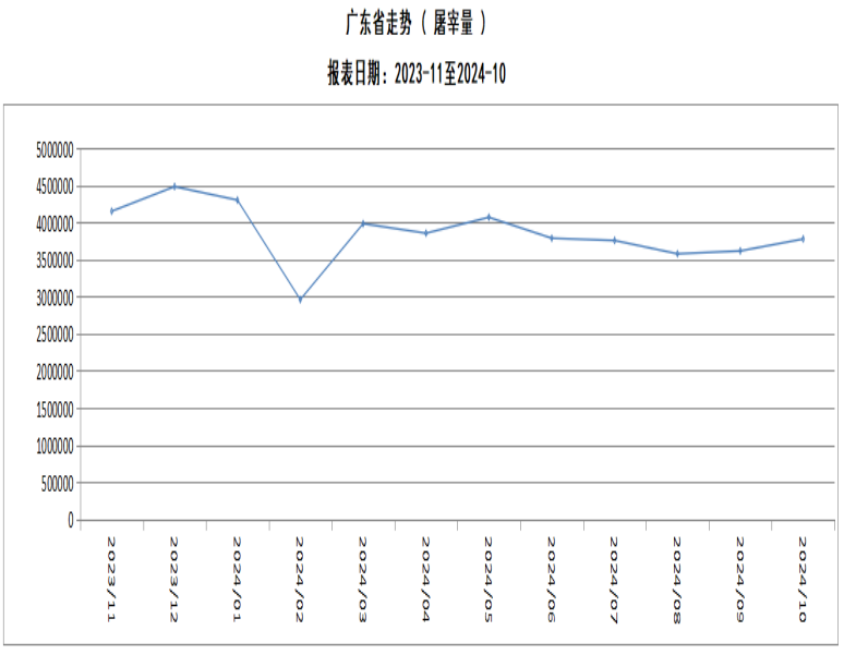 据对全省303家在产生猪定点屠宰企业跟踪监测,10月份共屠宰生猪3775123头,环比上升4.45%。