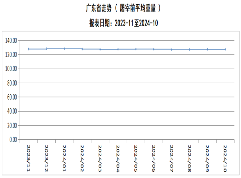 10月份,跟踪监测的303家生猪定点屠宰企业生猪屠宰前平均重量126.95公斤,环比持平。