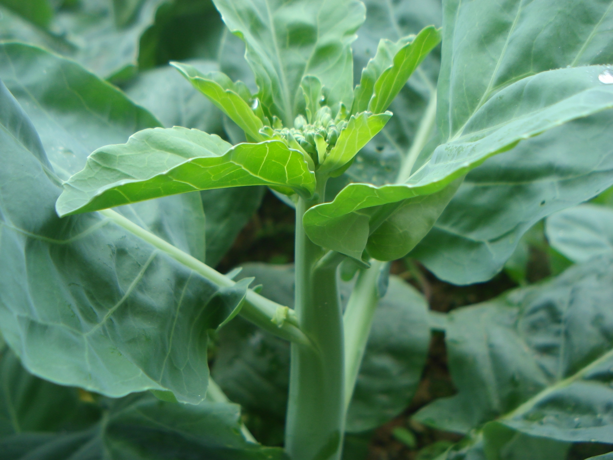 特征特性 全生育期为160~170 d,播种至初收为45~51 d。生长势较强,株型直立,株高36 cm,开展度34 cm,叶片椭圆形,肥厚微皱,浅绿色,腊粉少,茎圆粗壮均匀,节间中长,纤维少,品质优,可食部位鲜嫩,爽甜可口。菜薹长17~20 cm,薹茎粗2.0~2.5 cm,单薹质量110~150 g,播种至初收45~51 d,每667m2产量1200~1600kg。感观品质优;经农业部蔬菜水果品质监督检验测试中心(广州)检测,其中可溶性固形物为6.73%,还原糖1.42%,维生素C1.29mg.g-1,粗蛋白2.7 %,粗纤维0.64%。夏翠芥蓝在适播期内表现较好的适应性及抗性,其耐热性、耐涝性强;抗霜霉病、炭疽病、软腐病。