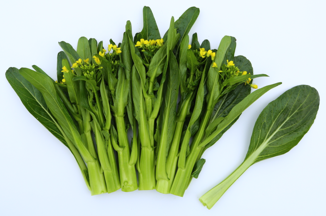 油绿702菜心生长势强、株型直立紧凑,株高24.9cm,株幅15.9cm,基叶短卵形、深油绿色,叶长18.6cm,宽8.2cm,叶柄长7.6cm,叶柄宽1.9cm;菜薹粗壮、匀称,色碧绿有光泽,肉质紧实,主薹高22.4cm,主薹粗1.7cm,质量40g左右。抽薹整齐,花球大,齐口花,味甜,爽脆,纤维少,品质优。还原糖含量为1.33 g/100g;维生C含量为1387 g/100g;粗蛋白含量为0.94 g/100g;可溶性固形物含量为4.3g/100g;粗纤维含量为0.66g/100g。