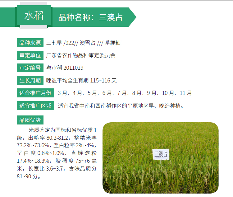 2019年农业主导品种:三澳占