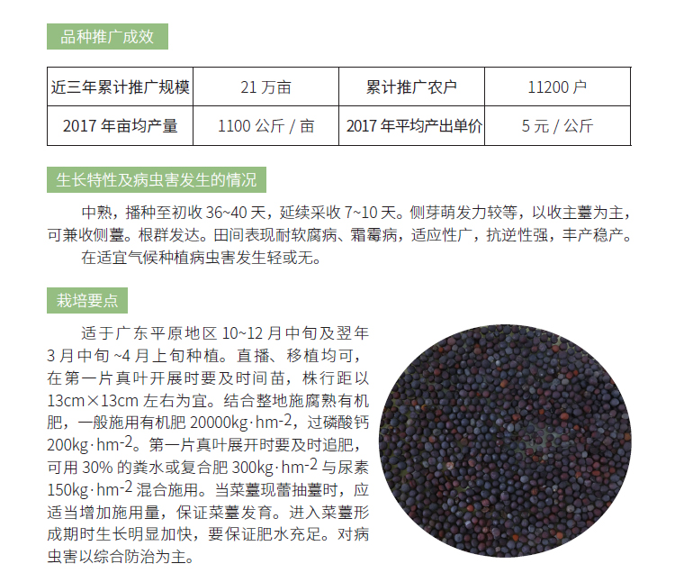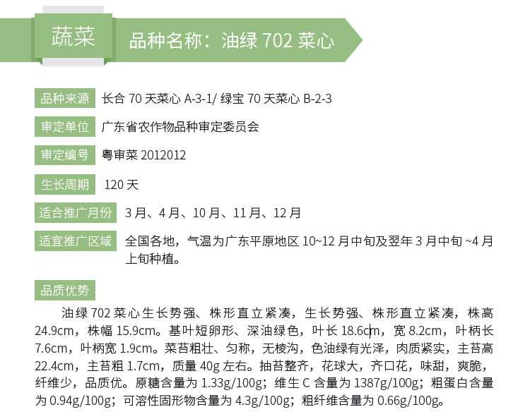 2019年农业主导品种:油绿702菜心