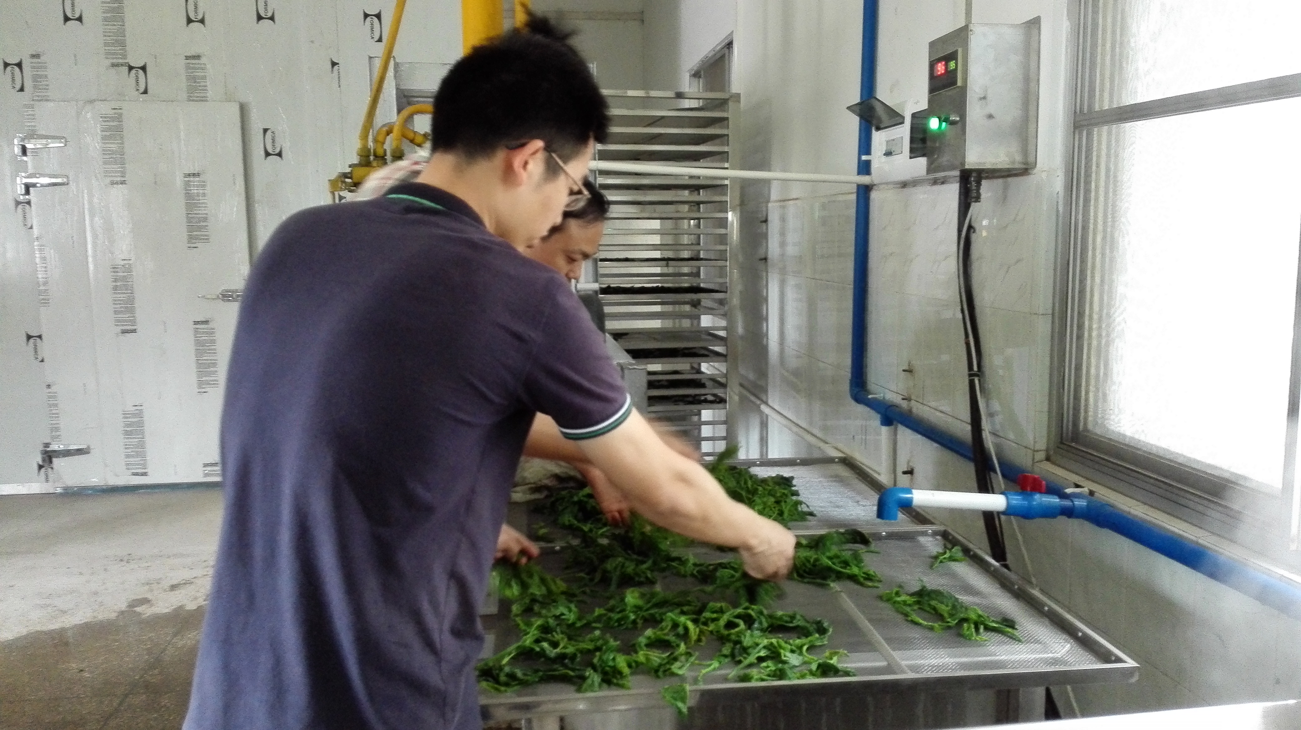 技术要点:生产工艺包括桑叶成熟度分级、烫漂护色、脱水和热风干燥等环节。关键在于烫漂护色温度范围需控制在90℃以上,热风干燥温度60-70℃。