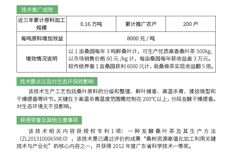 2019年主推技术:高香桑叶茶生产技术