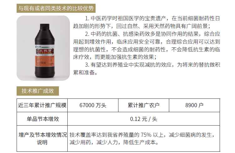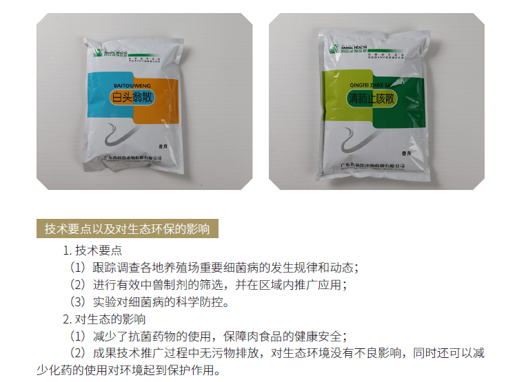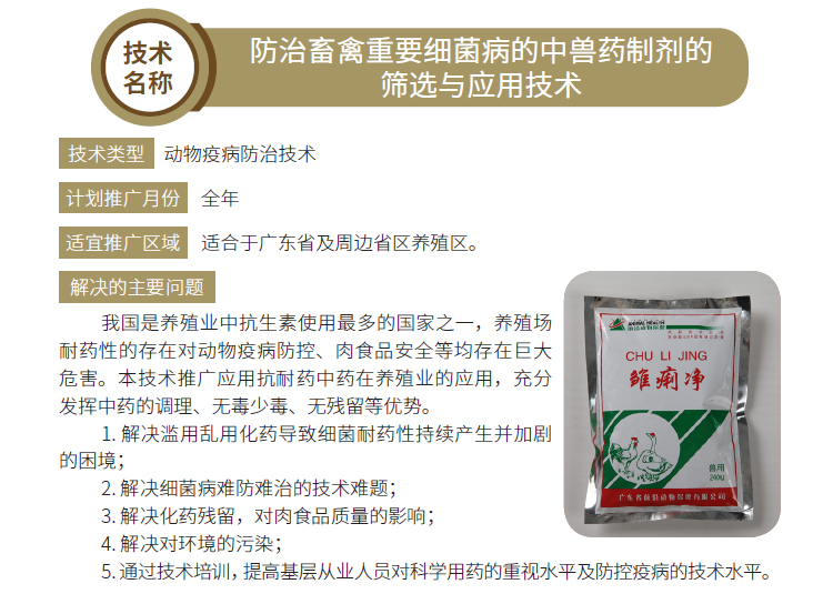 2019年主推技术:防治畜禽重要细菌病的中兽药制剂的筛选与应用技术