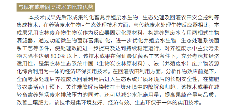 2019年主推技术:畜禽养殖废水生物-生态处理及回灌农田技术