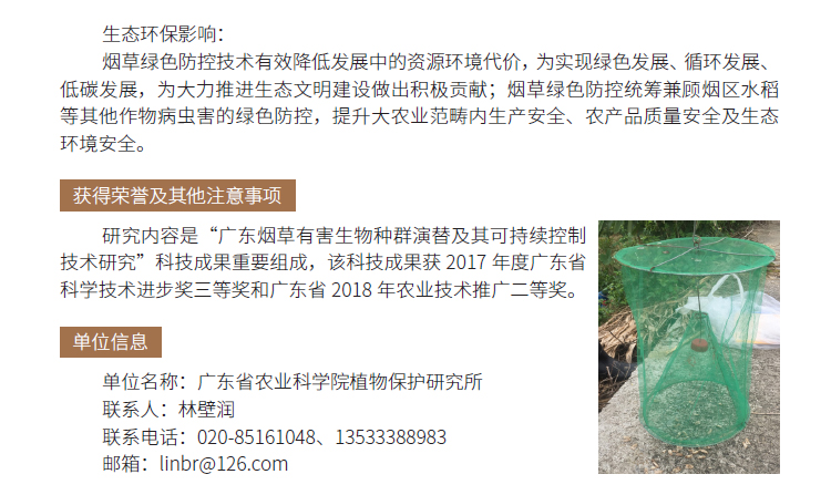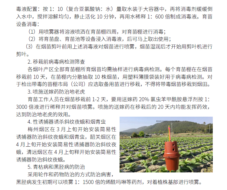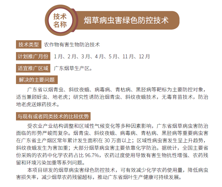2019年主推技术:烟草病虫害绿色防控技术