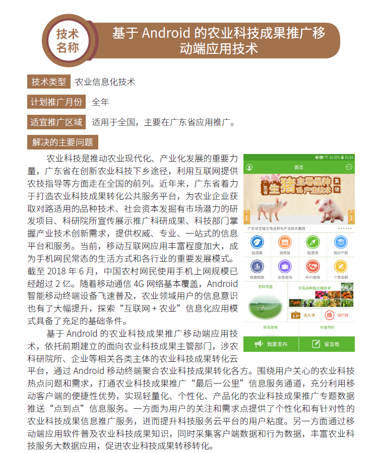 2019年主推技术:基于Android的农业科技成果推广移动端应用技术