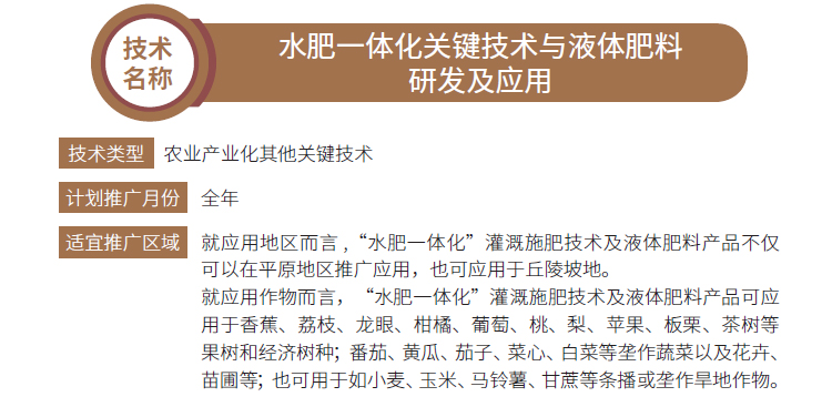 2019年主推技术:水肥一体化关键技术与液体肥料研发及应用