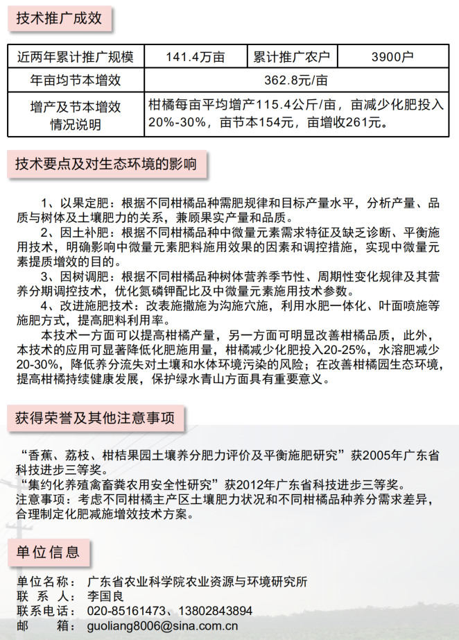 2021年农业主推技术:柑橘化肥减量增效技术