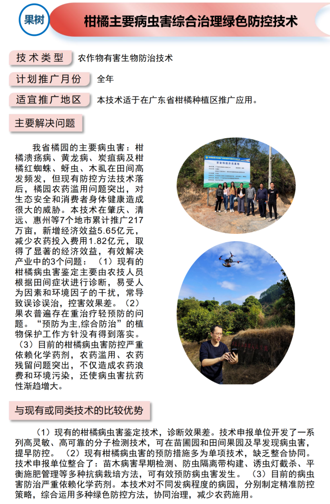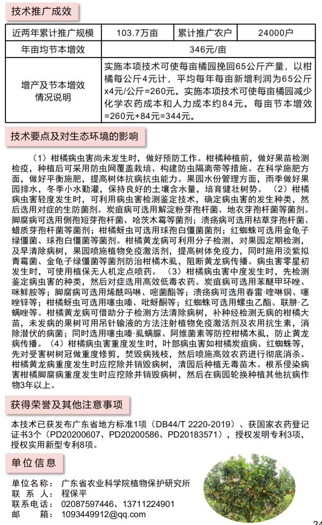 2021年农业主推技术:柑橘主要病虫害综合治理绿色防控技术