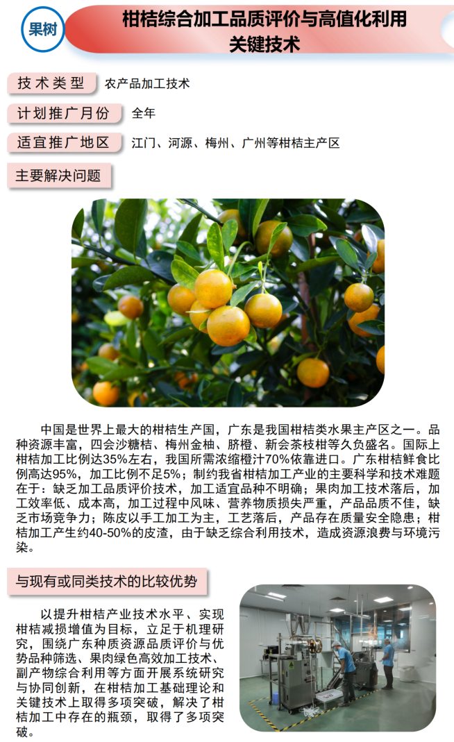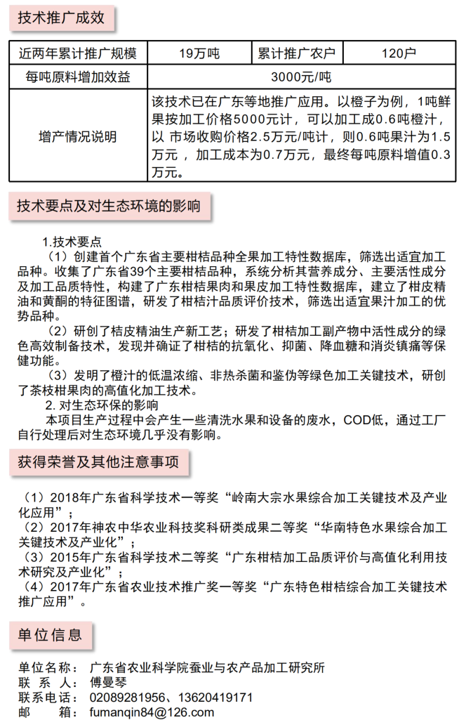 2021年农业主推技术:柑桔综合加工品质评价与高值化利用 关键技术