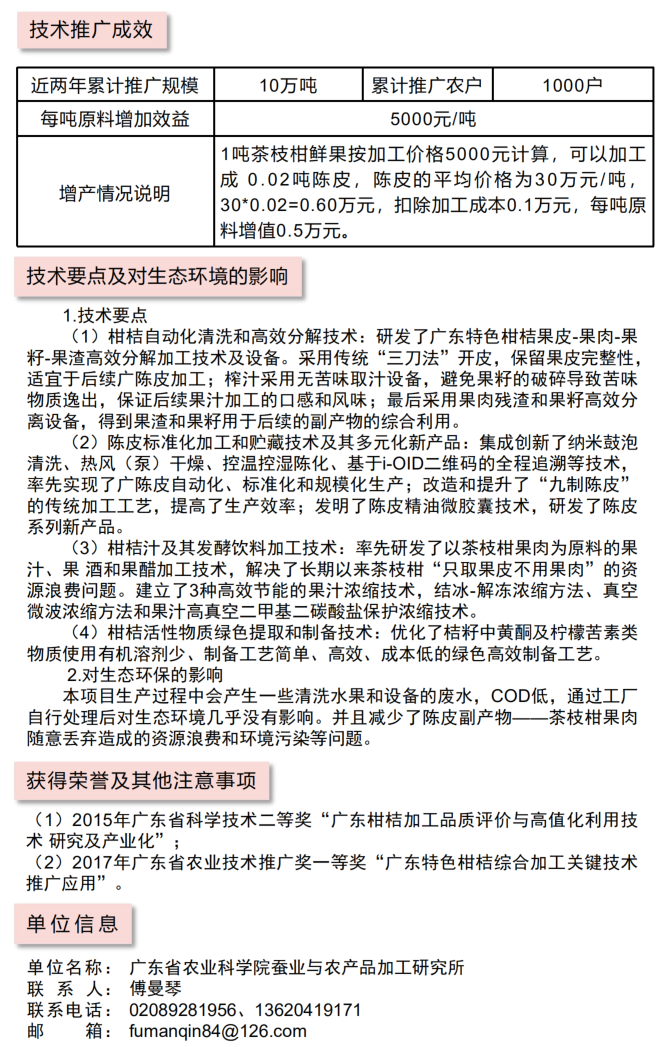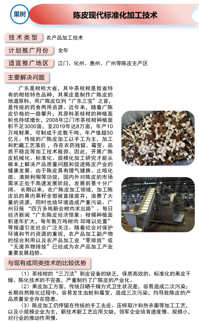 2021年农业主推技术:陈皮现代标准化加工技术