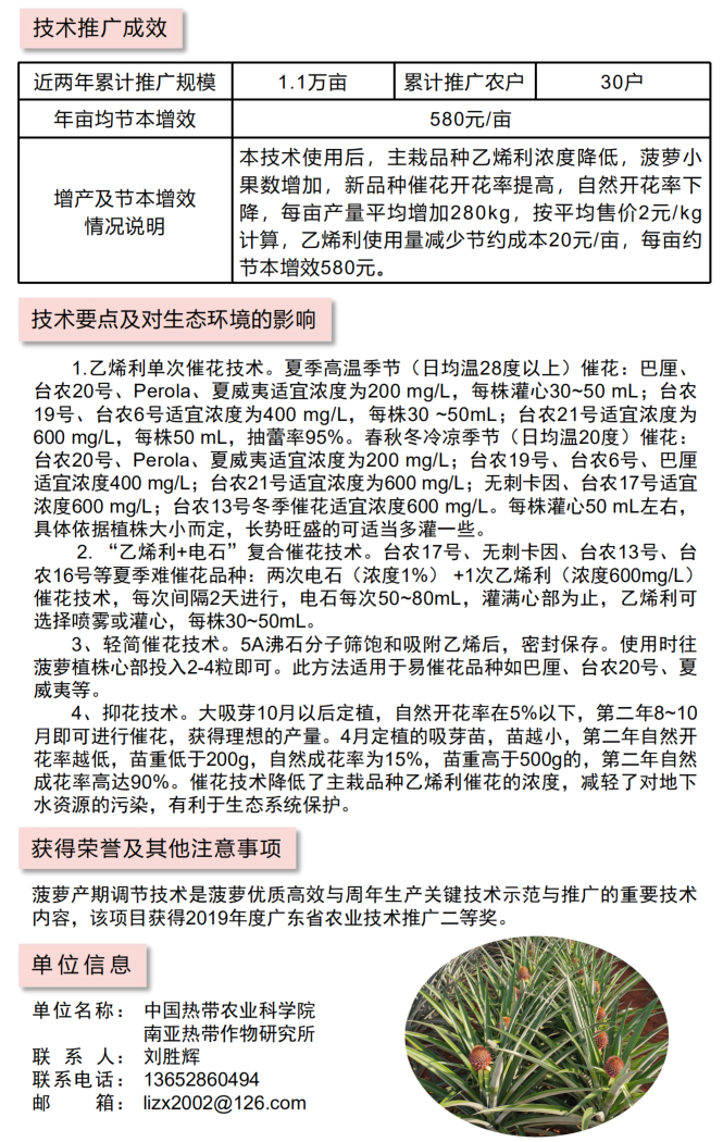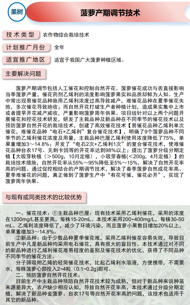 2021年农业主推技术:菠萝产期调节技术