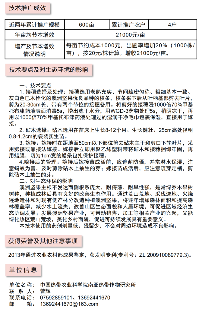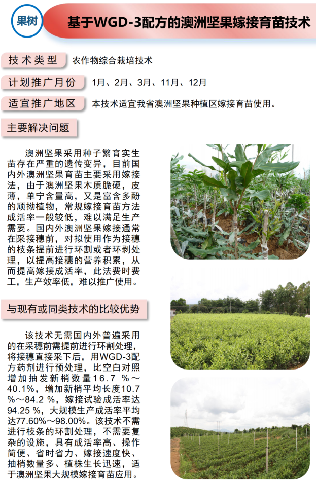 2021年农业主推技术:基于WGD-3配方的澳洲坚果嫁接育苗技术