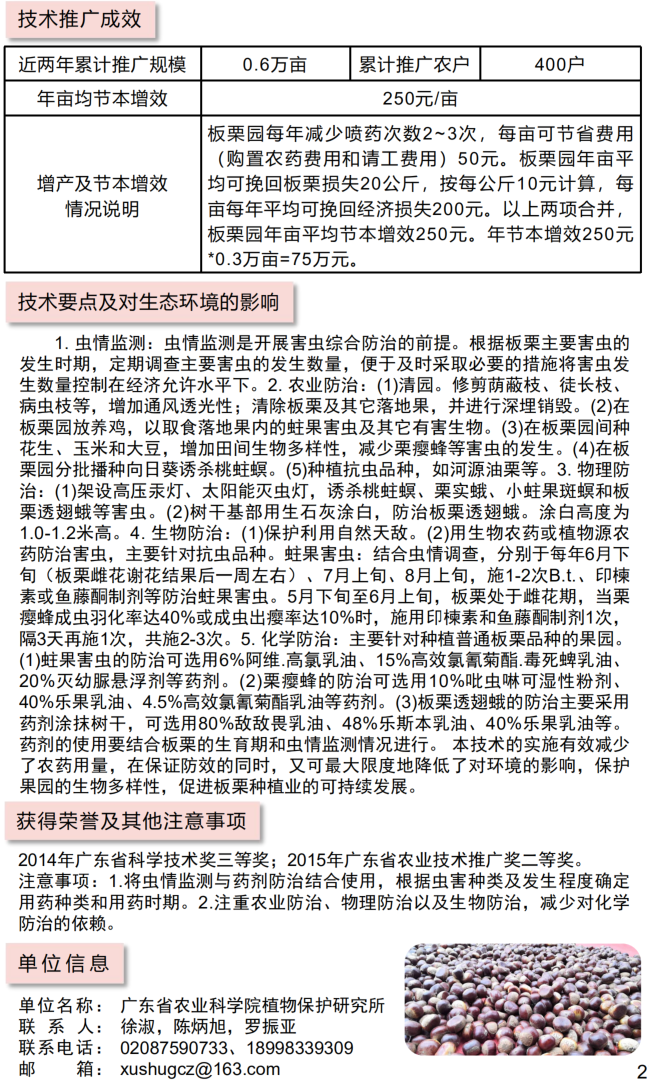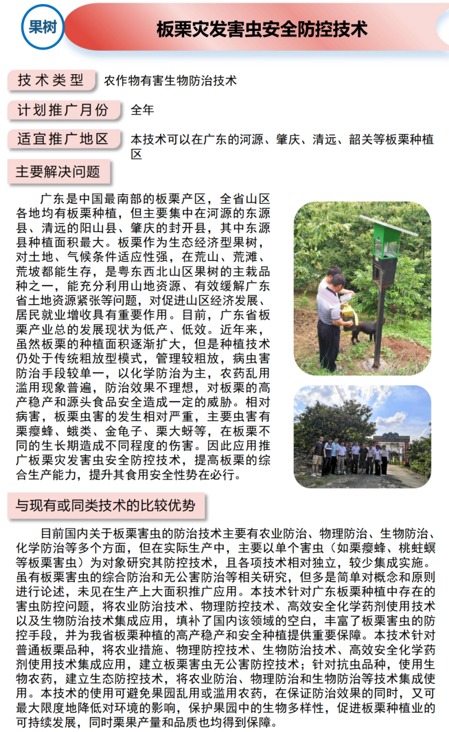 2021年农业主推技术:板栗灾发害虫安全防控技术