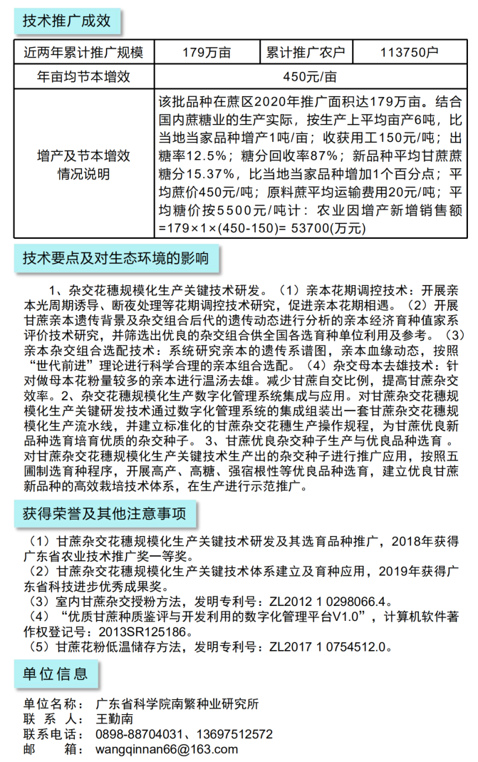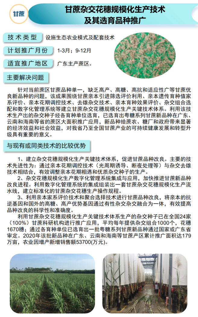 2021年农业主推技术:甘蔗杂交花穗规模化生产技术 及其选育品种推广