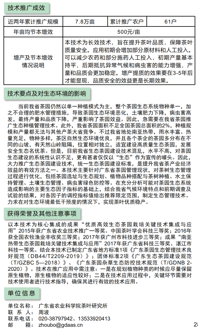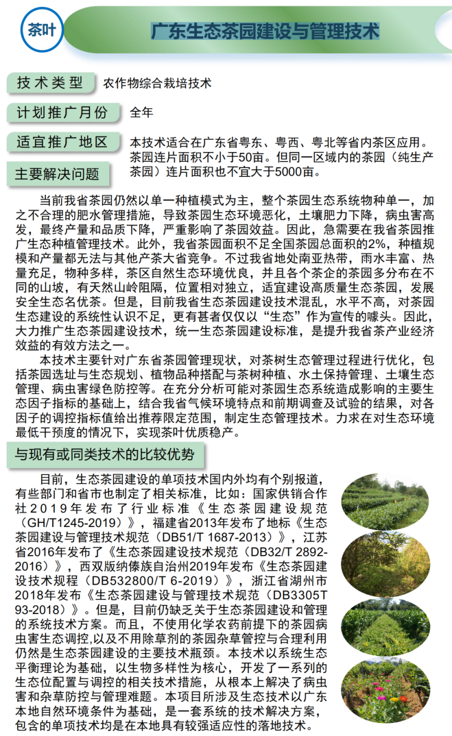 2021年农业主推技术:广东生态茶园建设与管理技术