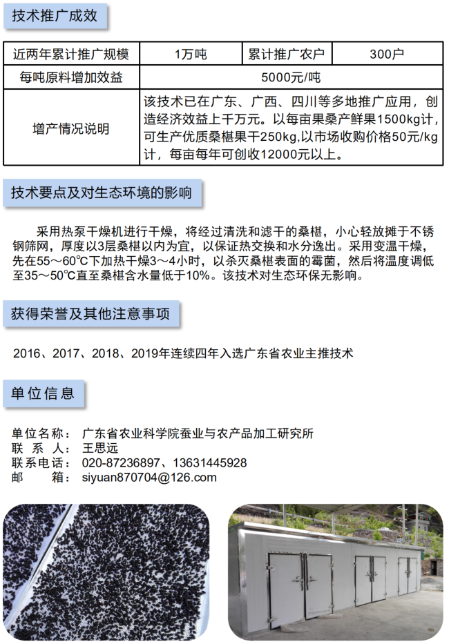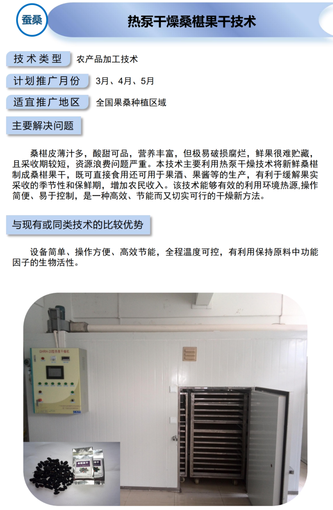 2021年农业主推技术:热泵干燥桑椹果干技术