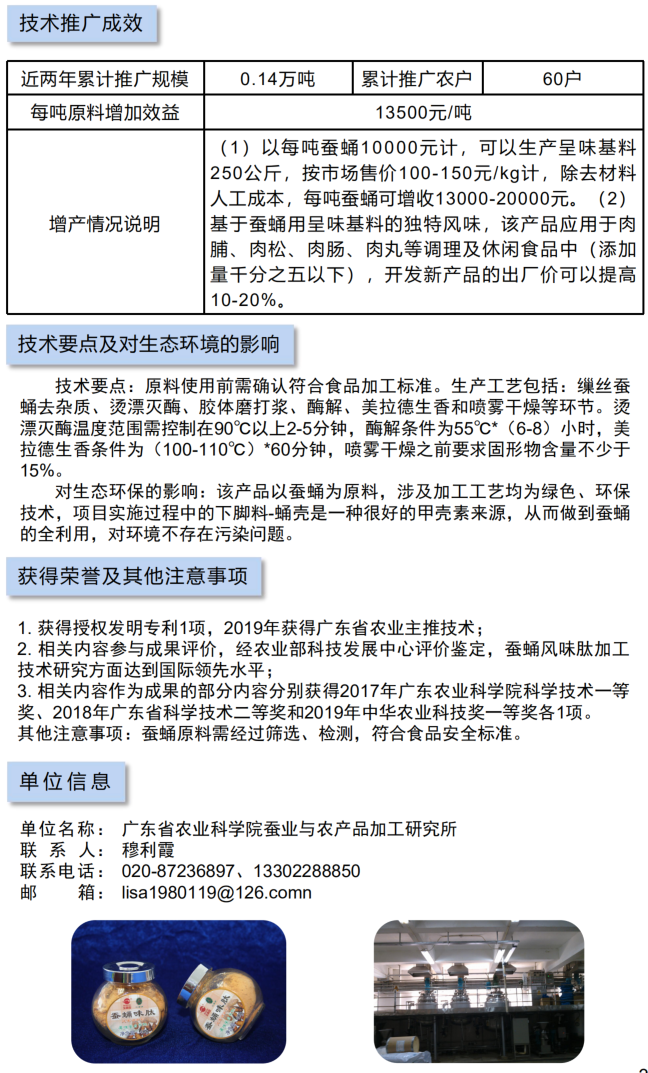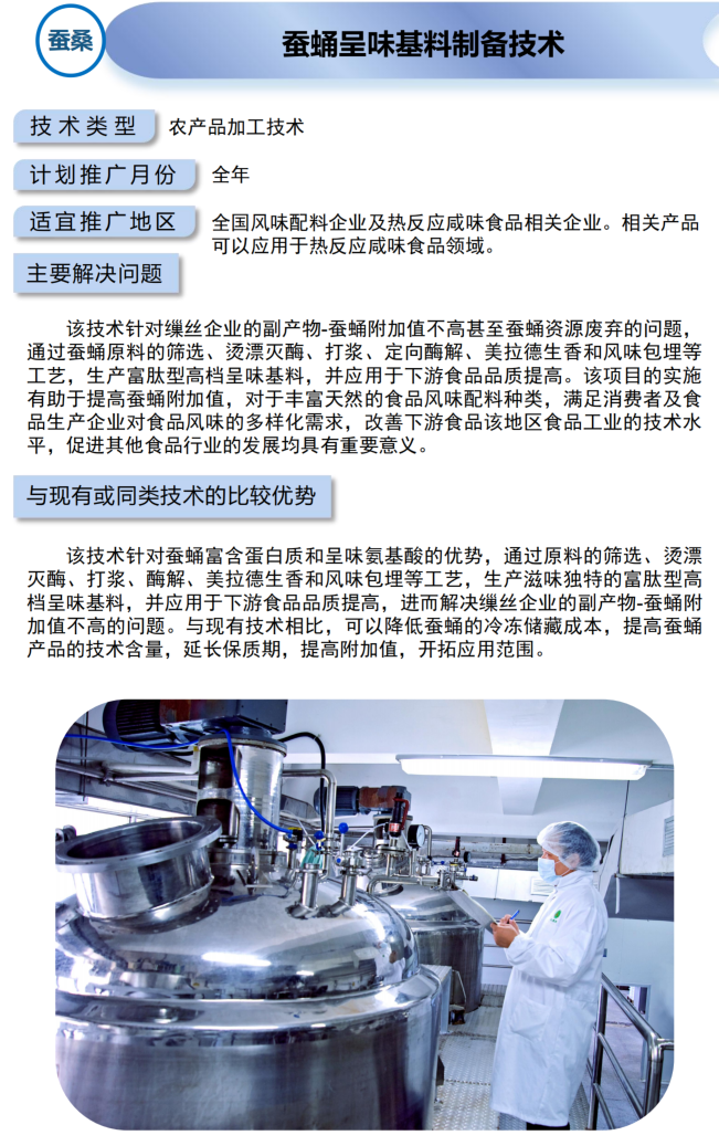 2021年农业主推技术:蚕蛹呈味基料制备技术