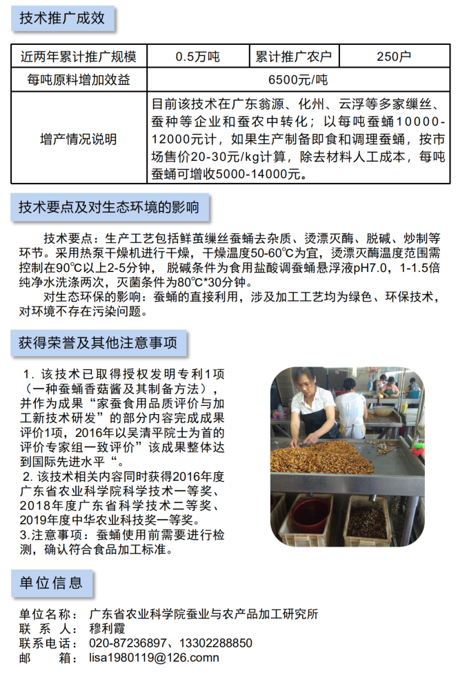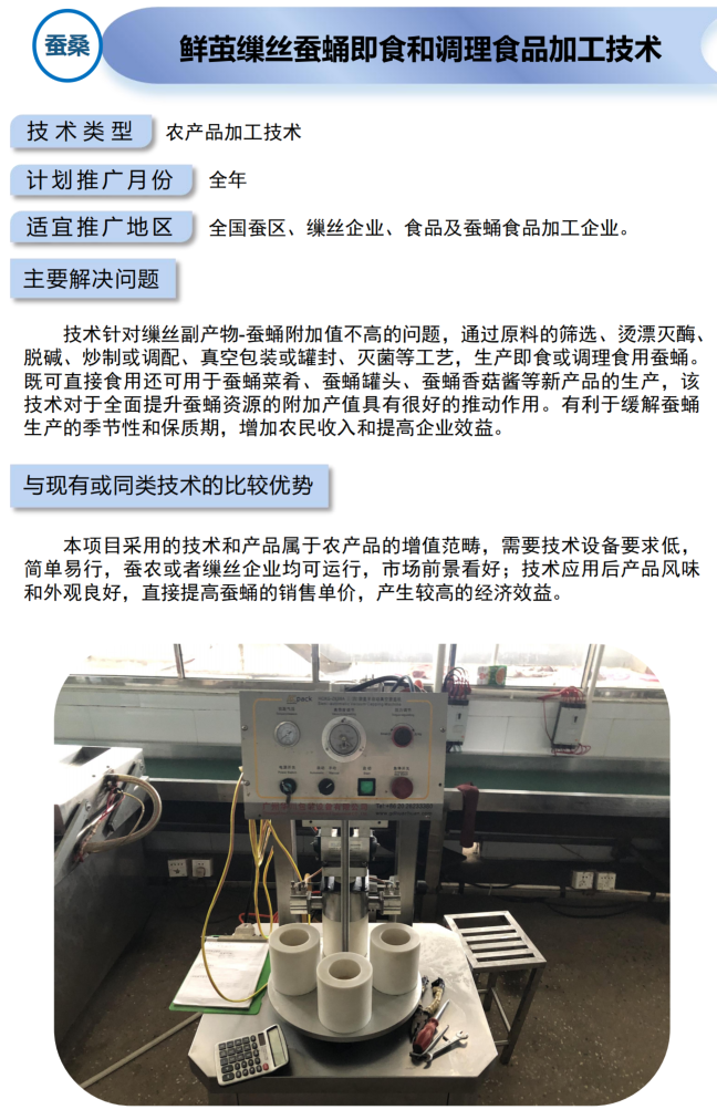 2021年农业主推技术:鲜茧缫丝蚕蛹即食和调理食品加工技术