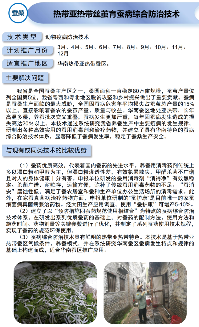 2021年农业主推技术:热带亚热带丝茧育蚕病综合防治技术