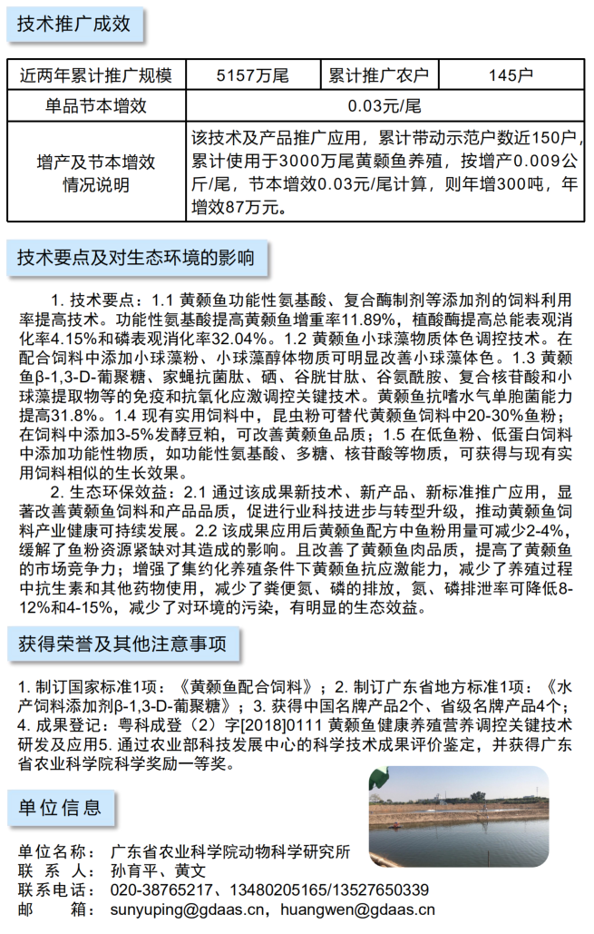 2021年农业主推技术:黄颡鱼健康养殖营养调控关键技术