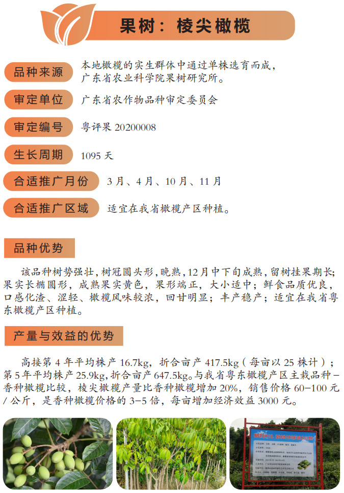 2022年农业主推技术:棱尖橄榄