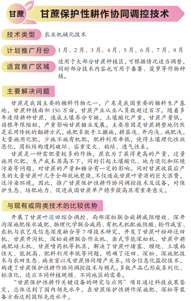 2022年农业主推技术:甘蔗保护性耕作协同调控技术