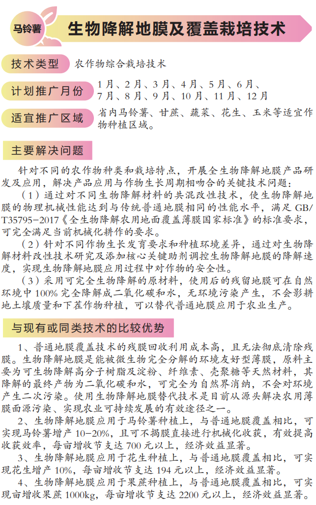 2022年农业主推技术:生物降解地膜及覆盖栽培技术