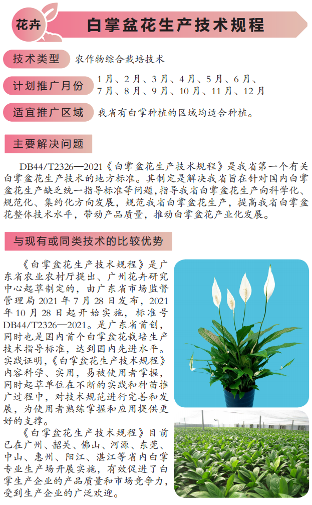 2022年农业主推技术:白掌盆花生产技术规程